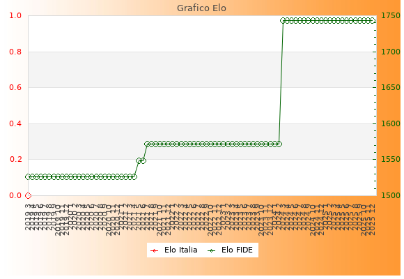 Elo FIDE: 1743    Migliore: 1743  (Dicembre 2025)    Peggiore: 1526  (Marzo 2019)
