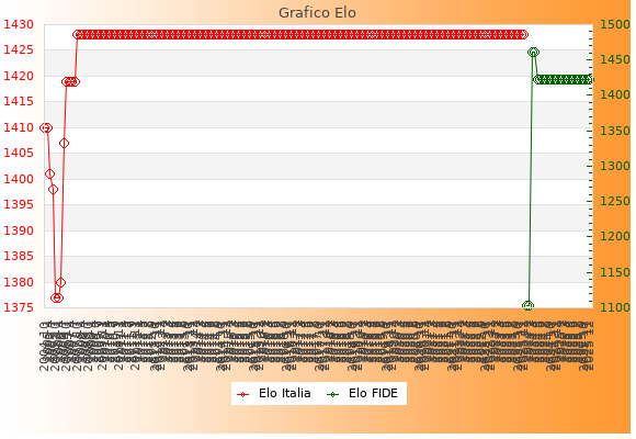 Elo FIDE: 1422    Migliore: 1462  (Aprile 2024)    Peggiore: 1103  (Gennaio 2024)
