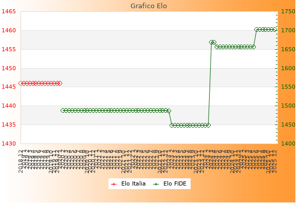 Elo FIDE: 1702    Migliore: 1702  (Dicembre 2025)    Peggiore: 1449  (Febbraio 2023)