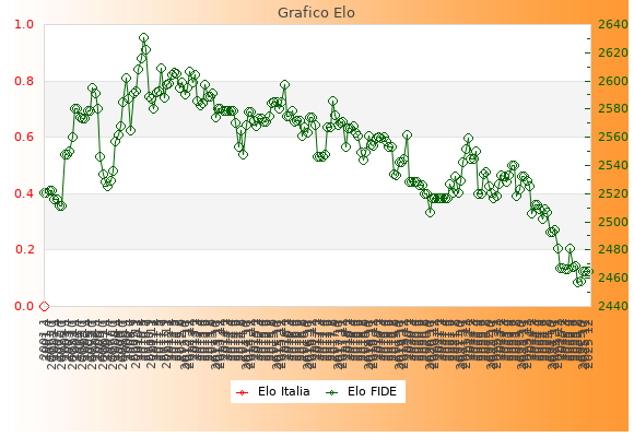 Elo FIDE: 2465    Migliore: 2631  (Maggio 2010)    Peggiore: 2457  (Agosto 2025)