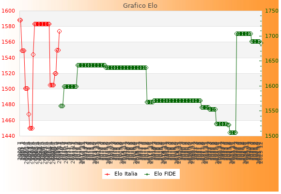Elo FIDE: 1686    Migliore: 1704  (Marzo 2025)    Peggiore: 1507  (Settembre 2023)
