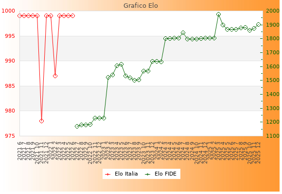 Elo FIDE: 1903    Migliore: 1976  (Marzo 2025)    Peggiore: 1169  (Luglio 2022)