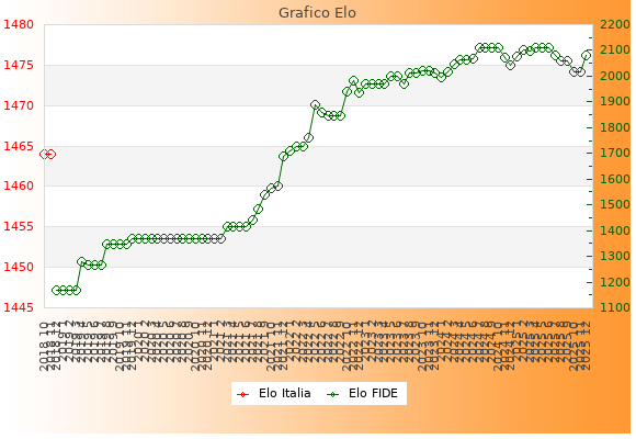 Elo FIDE: 2081    Migliore: 2110  (Giugno 2025)    Peggiore: 1168  (Dicembre 2018)