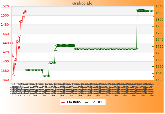 Elo FIDE: 1826    Migliore: 1828  (Marzo 2025)    Peggiore: 1632  (Ottobre 2013)