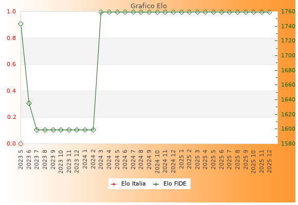 Elo FIDE: 1759    Migliore: 1759  (Dicembre 2025)    Peggiore: 1599  (Luglio 2023)