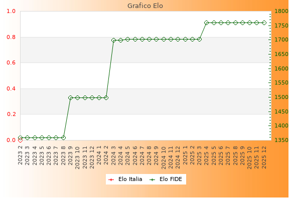 Elo FIDE: 1760    Migliore: 1760  (Dicembre 2025)    Peggiore: 1359  (Febbraio 2023)