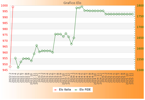 Elo FIDE: 1761    Migliore: 1797  (Maggio 2024)    Peggiore: 1512  (Maggio 2022)