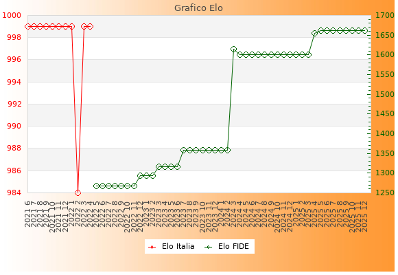 Elo FIDE: 1662    Migliore: 1662  (Dicembre 2025)    Peggiore: 1268  (Maggio 2022)