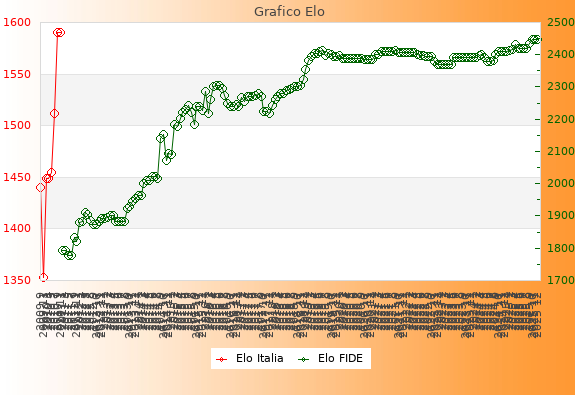 Elo FIDE: 2447    Migliore: 2447  (Dicembre 2025)    Peggiore: 1777  (Maggio 2011)