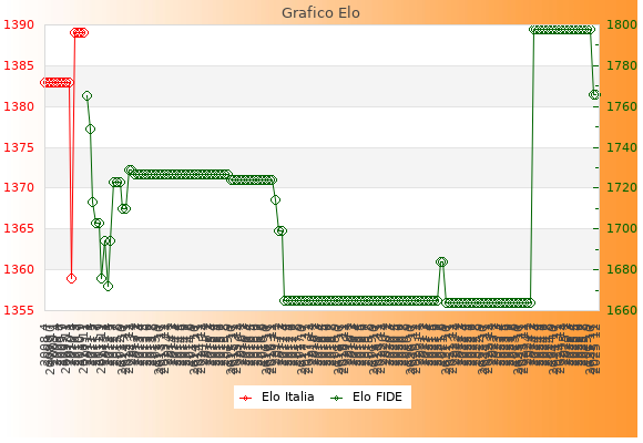 Elo FIDE: 1766    Migliore: 1798  (Ottobre 2025)    Peggiore: 1664  (Ottobre 2021)