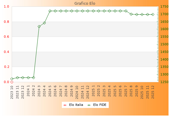 Elo FIDE: 1697    Migliore: 1720  (Luglio 2025)    Peggiore: 1272  (Ottobre 2023)