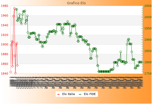 Elo FIDE: 1800    Migliore: 2035  (Luglio 2002)    Peggiore: 1759  (Marzo 2020)