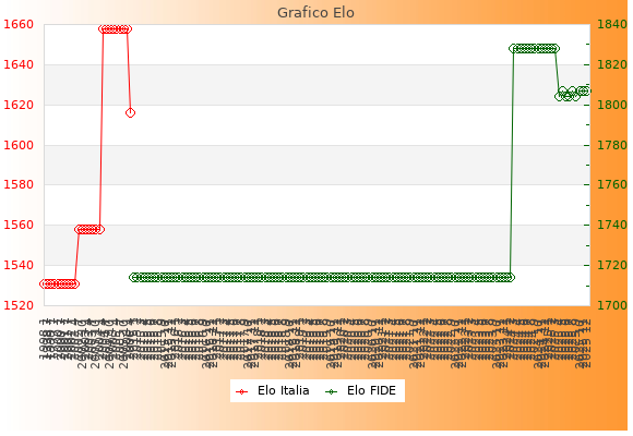 Elo FIDE: 1807    Migliore: 1828  (Marzo 2025)    Peggiore: 1714  (Gennaio 2015)