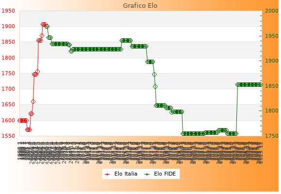 Elo FIDE: 1853    Migliore: 1969  (Aprile 2006)    Peggiore: 1755  (Febbraio 2020)