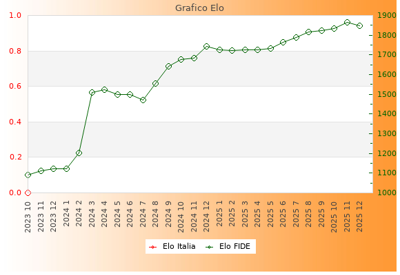Elo FIDE: 1846    Migliore: 1864  (Novembre 2025)    Peggiore: 1089  (Ottobre 2023)