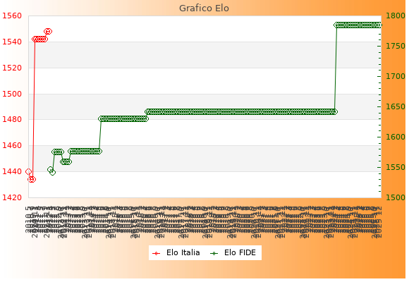 Elo FIDE: 1785    Migliore: 1785  (Dicembre 2025)    Peggiore: 1542  (Maggio 2012)