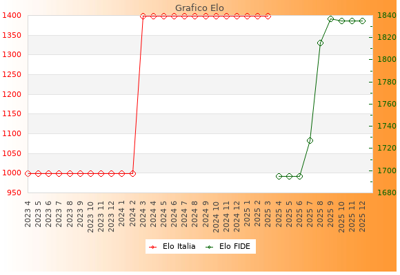 Elo FIDE: 1835    Migliore: 1837  (Settembre 2025)    Peggiore: 1695  (Aprile 2025)