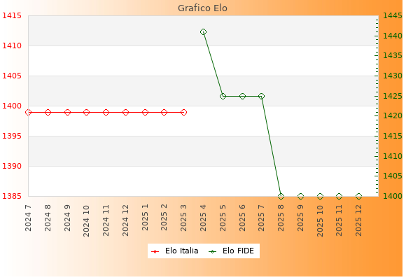 Elo FIDE: 1400    Migliore: 1441  (Aprile 2025)    Peggiore: 1400  (Agosto 2025)