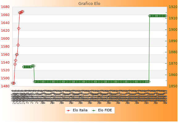 Elo FIDE: 1912    Migliore: 1912  (Dicembre 2025)    Peggiore: 1854  (Maggio 2011)
