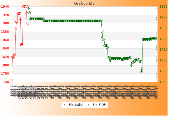 Elo FIDE: 1803    Migliore: 1950  (Gennaio 2006)    Peggiore: 1648  (Gennaio 2024)