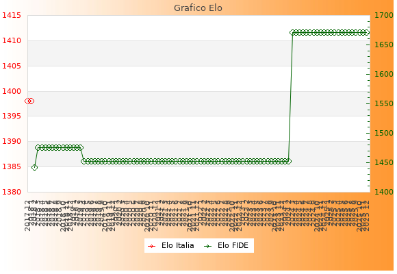 Elo FIDE: 1671    Migliore: 1671  (Dicembre 2025)    Peggiore: 1442  (Febbraio 2018)