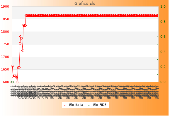 Elo Italia: 1865    Migliore: 1865  (Dicembre 2025)    Peggiore: 1600  (Gennaio 1998)