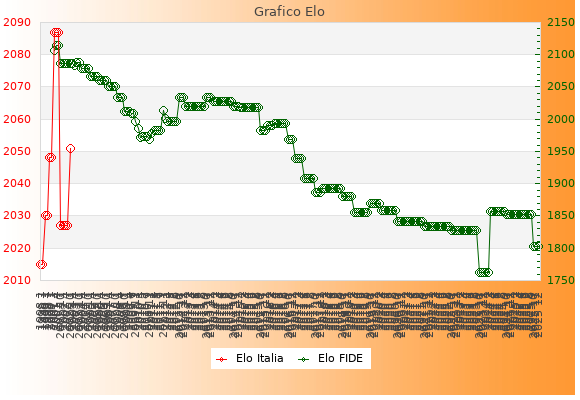 Elo FIDE: 1802    Migliore: 2115  (Luglio 2001)    Peggiore: 1762  (Ottobre 2023)