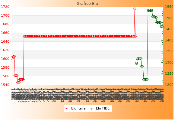 Elo FIDE: 1460    Migliore: 1534  (Settembre 2024)    Peggiore: 1223  (Settembre 2023)