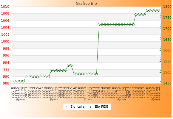 Elo FIDE: 1678    Migliore: 1678  (Dicembre 2025)    Peggiore: 1410  (Giugno 2016)