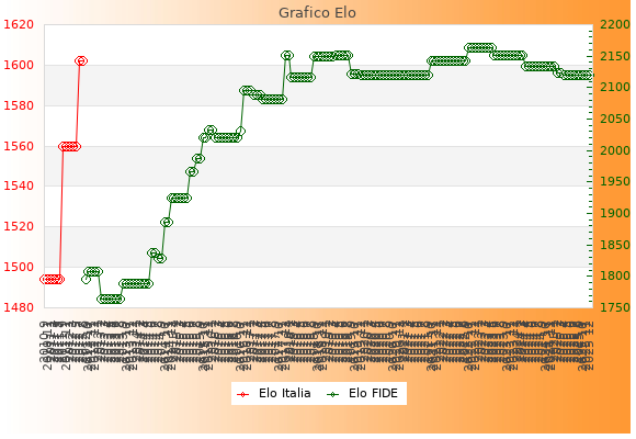 Elo FIDE: 2119    Migliore: 2164  (Maggio 2023)    Peggiore: 1764  (Febbraio 2013)