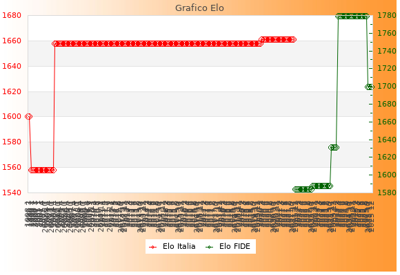 Elo FIDE: 1699    Migliore: 1779  (Settembre 2025)    Peggiore: 1584  (Dicembre 2021)