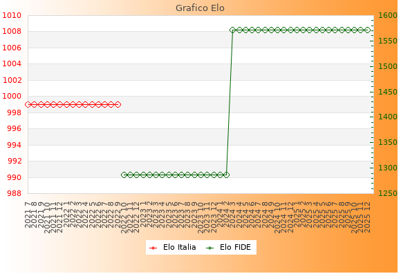 Elo FIDE: 1572    Migliore: 1572  (Dicembre 2025)    Peggiore: 1287  (Ottobre 2022)