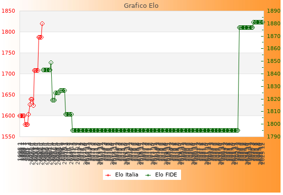 Elo FIDE: 1881    Migliore: 1881  (Dicembre 2025)    Peggiore: 1795  (Gennaio 2011)
