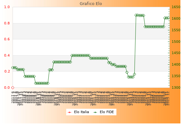 Elo FIDE: 1602    Migliore: 1615  (Aprile 2024)    Peggiore: 1319  (Settembre 2018)
