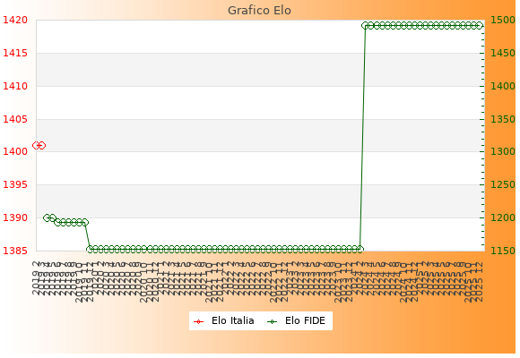Elo FIDE: 1492    Migliore: 1492  (Dicembre 2025)    Peggiore: 1153  (Dicembre 2019)