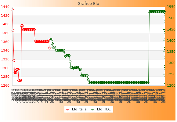 Elo FIDE: 1528    Migliore: 1528  (Dicembre 2025)    Peggiore: 1214  (Marzo 2017)