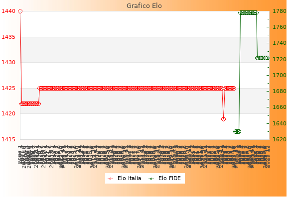 Elo FIDE: 1722    Migliore: 1778  (Marzo 2025)    Peggiore: 1630  (Novembre 2023)