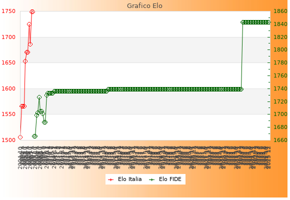 Elo FIDE: 1843    Migliore: 1843  (Dicembre 2025)    Peggiore: 1666  (Luglio 2007)