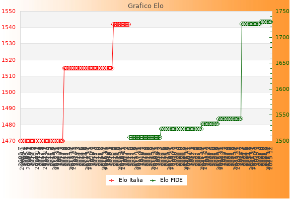 Elo FIDE: 1730    Migliore: 1730  (Dicembre 2025)    Peggiore: 1507  (Maggio 2017)