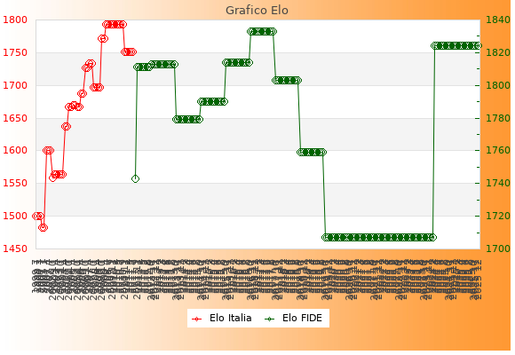Elo FIDE: 1824    Migliore: 1833  (Settembre 2017)    Peggiore: 1707  (Ottobre 2019)