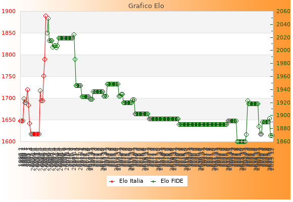 Elo FIDE: 1869    Migliore: 2049  (Gennaio 2006)    Peggiore: 1860  (Giugno 2023)
