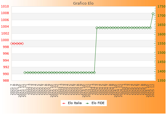 Elo FIDE: 1711    Migliore: 1711  (Dicembre 2025)    Peggiore: 1394  (Dicembre 2021)