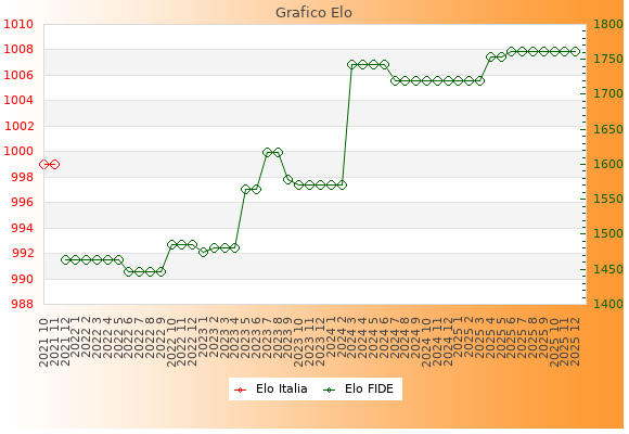 Elo FIDE: 1761    Migliore: 1761  (Dicembre 2025)    Peggiore: 1447  (Giugno 2022)