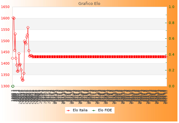 Elo Italia: 1430    Migliore: 1603  (Luglio 1998)    Peggiore: 1327  (Luglio 2003)