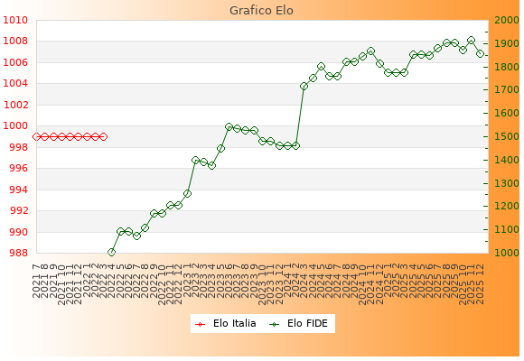 Elo FIDE: 1857    Migliore: 1914  (Novembre 2025)    Peggiore: 1002  (Aprile 2022)