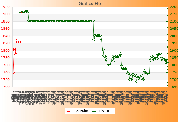 Elo FIDE: 1818    Migliore: 2168  (Aprile 2005)    Peggiore: 1689  (Agosto 2022)
