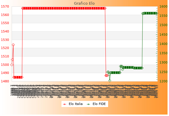 Elo FIDE: 1564    Migliore: 1564  (Dicembre 2025)    Peggiore: 1203  (Febbraio 2020)