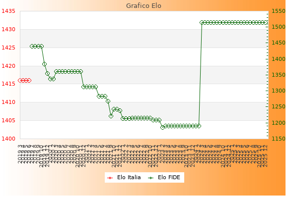 Elo FIDE: 1514    Migliore: 1514  (Dicembre 2025)    Peggiore: 1185  (Febbraio 2023)