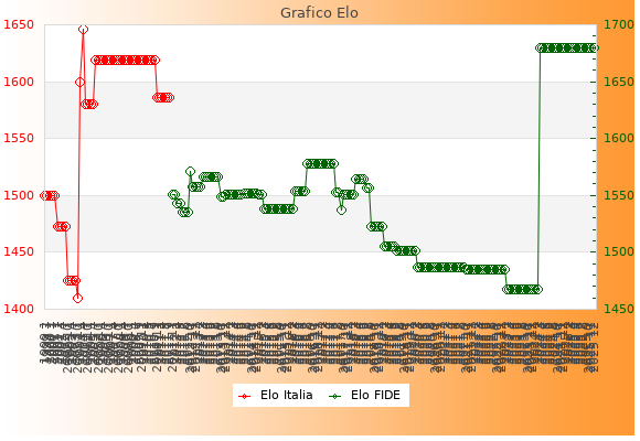 Elo FIDE: 1680    Migliore: 1680  (Dicembre 2025)    Peggiore: 1467  (Febbraio 2023)