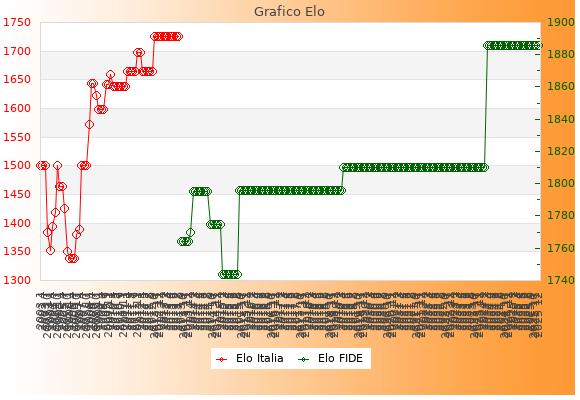 Elo FIDE: 1886    Migliore: 1886  (Dicembre 2025)    Peggiore: 1744  (Febbraio 2015)